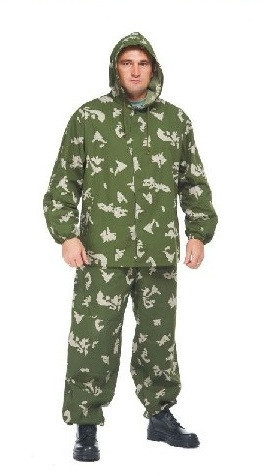 Костюм маскировочный летний (берёзка) лучшая маскировка на летнем ландшафте, куртка с капюшоном и брюки свободного покроя с поясом на резинке.