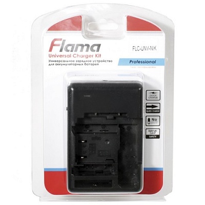 Универсальное зарядное устройство Flama для аккумуляторных батарей предназначено для зарядки аккумуляторных батарей, используемых в фото или видеокамерах.