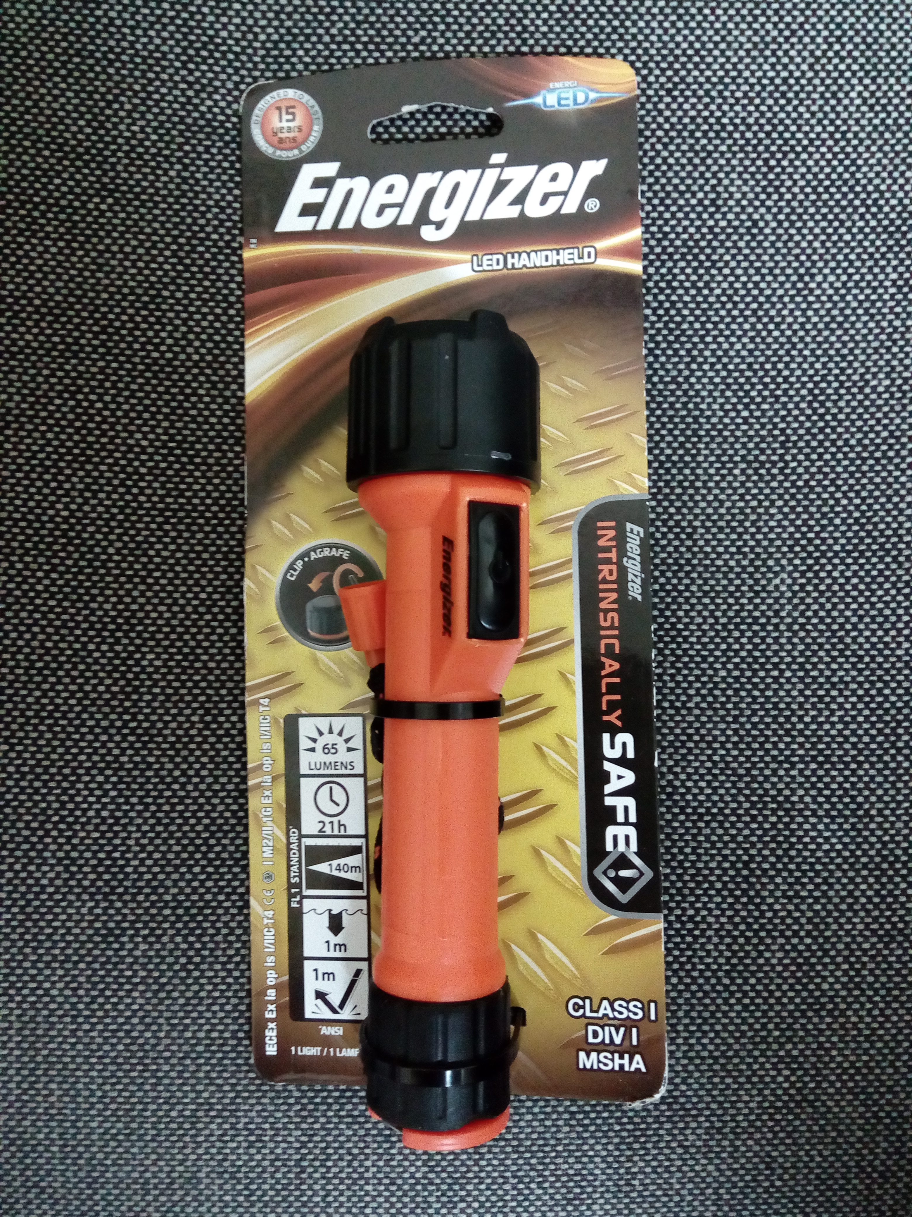 Ручной фонарь Energizer® Handheld одобрен международными агентствами по безопасности и идеально подходит для работы в тяжелых условиях. Этот высококачественный фонарь разработан специально для промышленных нужд, он водо- и пыленепроницаем и выдерживает многократные падения. Фонарь снабжен встроенным карабином для крепления к поясному ремню, что позволяет быстро использовать его в случае необходимости, а оранжевый цвет помогает быстро найти его. Светодиодная технология обеспечивает как стабильное яркое освещение, так и длительное время работы фонаря.