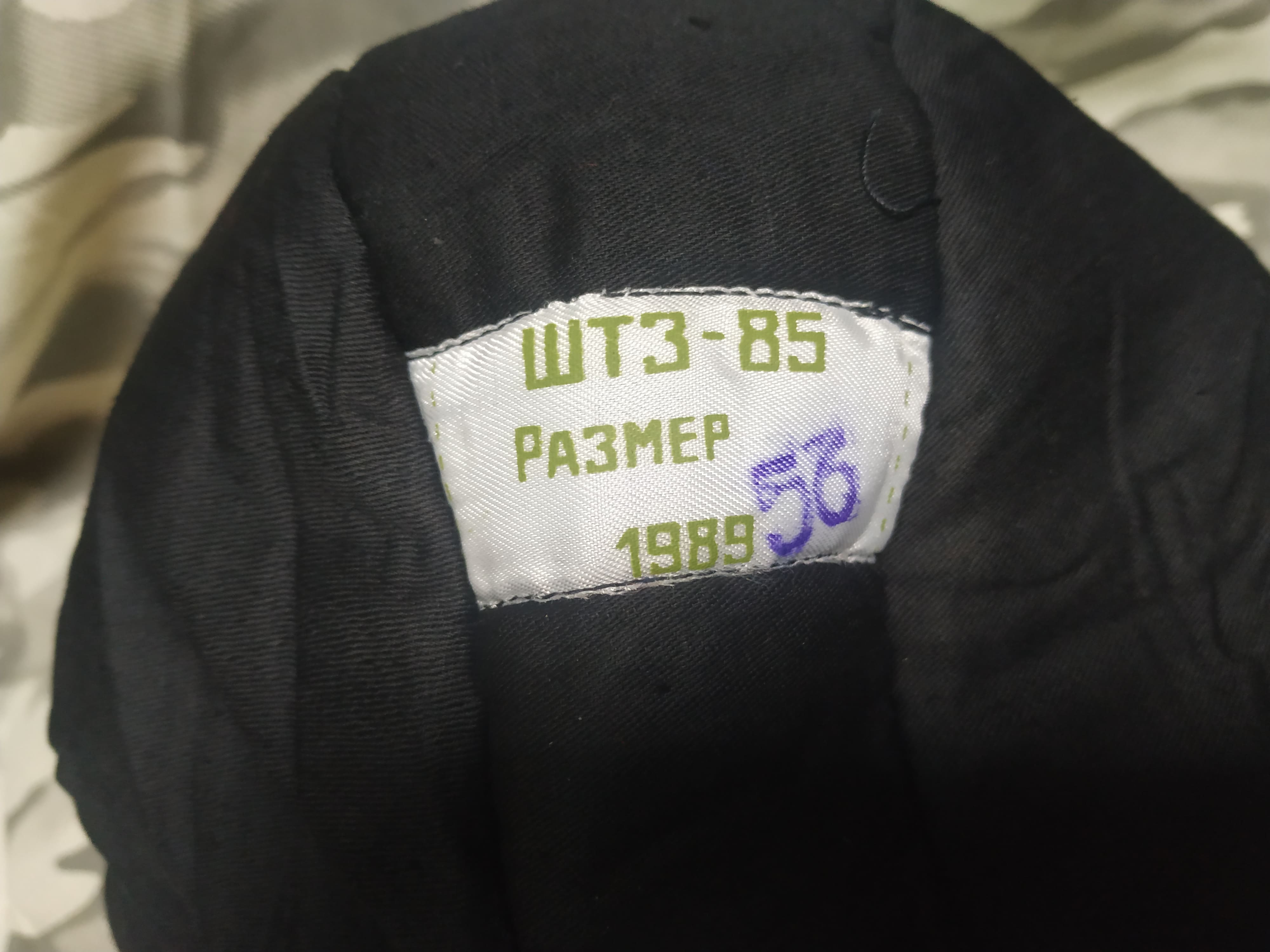 Шлем авиационного техника ШТЗ-85 (СССР, 86 года выпуска) Материал - натуральное плотное сукно в 2 слоя + утеплитель. Подкладка — хб. Размер меняется с помощью утяжки на затылке.